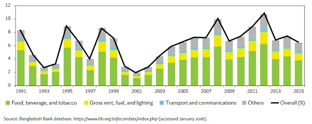 Figure 2:  Bangladesh's Inflation, 1991–2015 (percentage points)